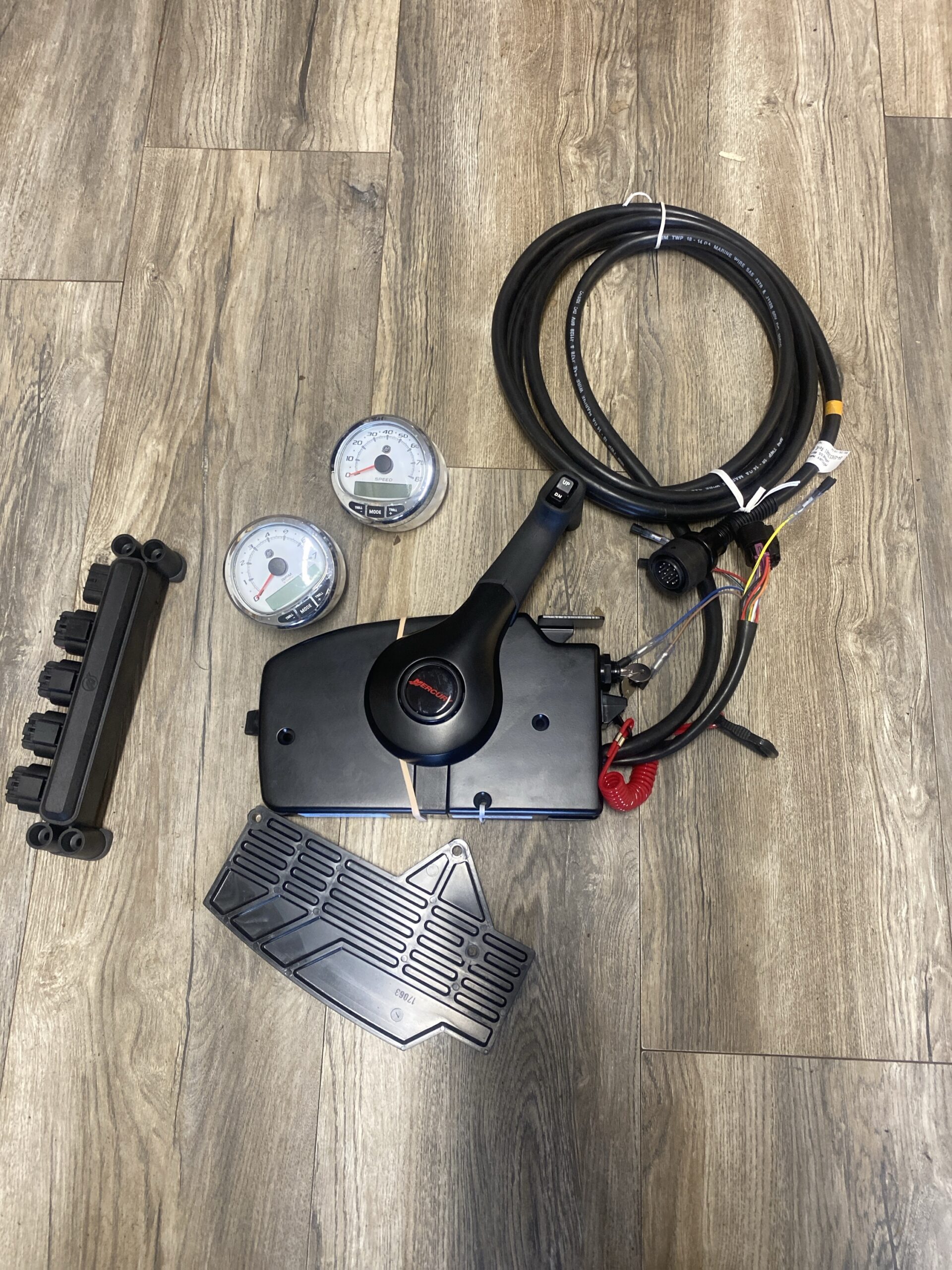 2014 Mercury F115hp XL with Command Thrust Gearbox. The engine was used for pleasure use and has 1158.5hrs on the clock. The engine is accompanied with a side mount control box , SC1000 tach and speed gauge with all looms and rigging tube for a neat finish.